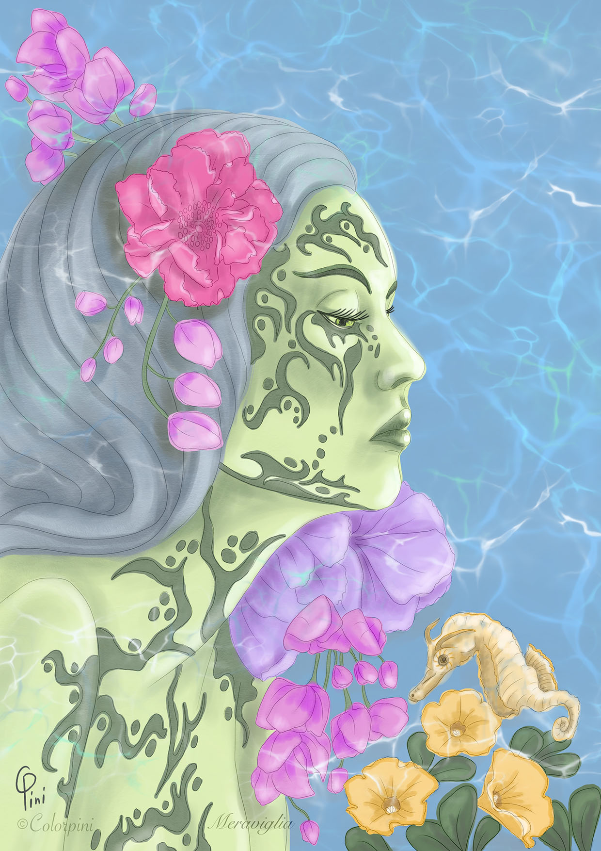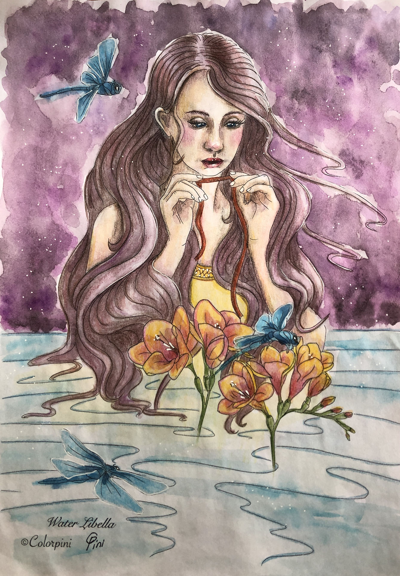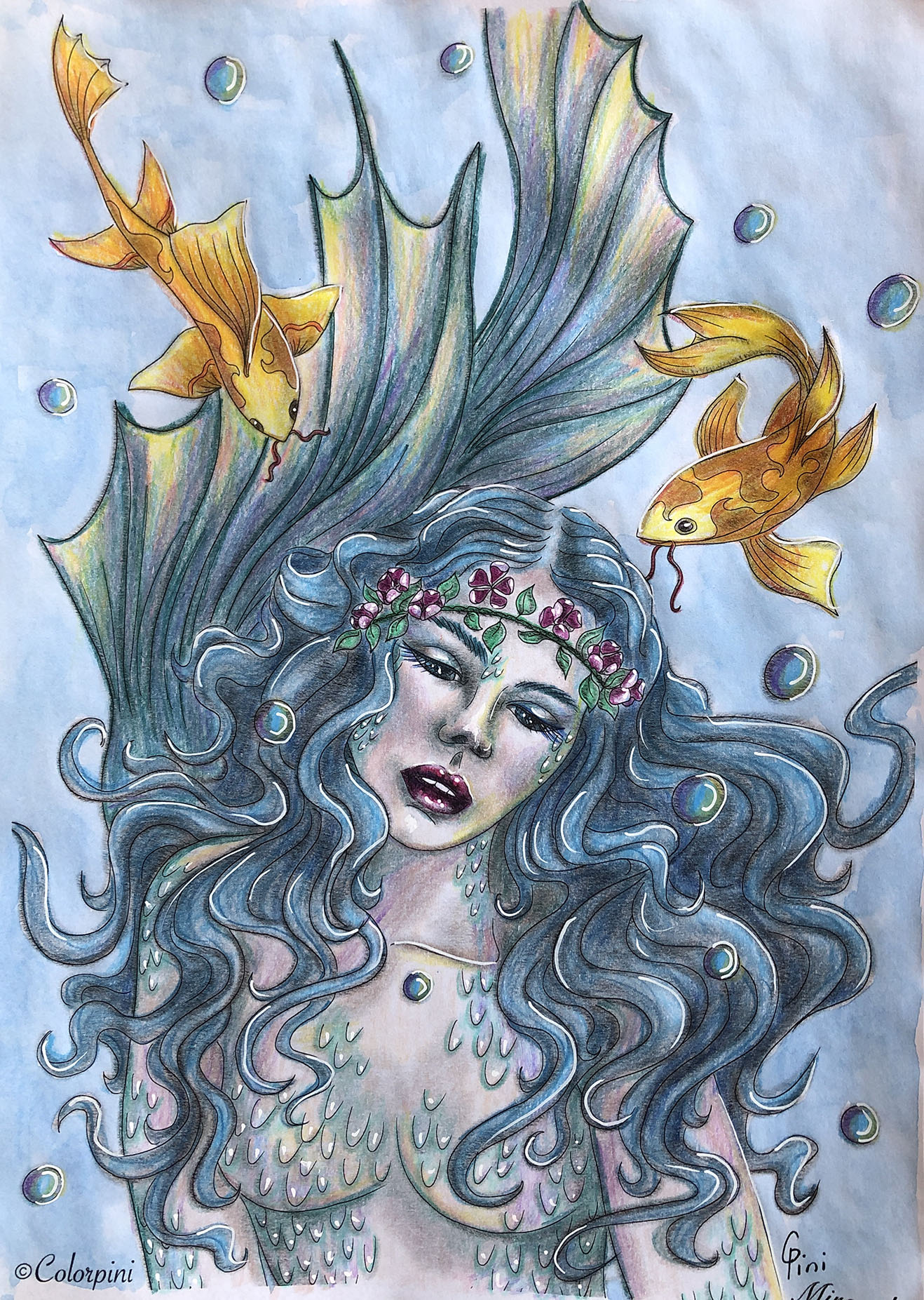 WATER NYMPHES – digital Coloring Pages for Adults – 6 gorgeous designs in a LINEART and a GRAYSCALE LIGHT PDF – just download and print from Etsy Colorpini