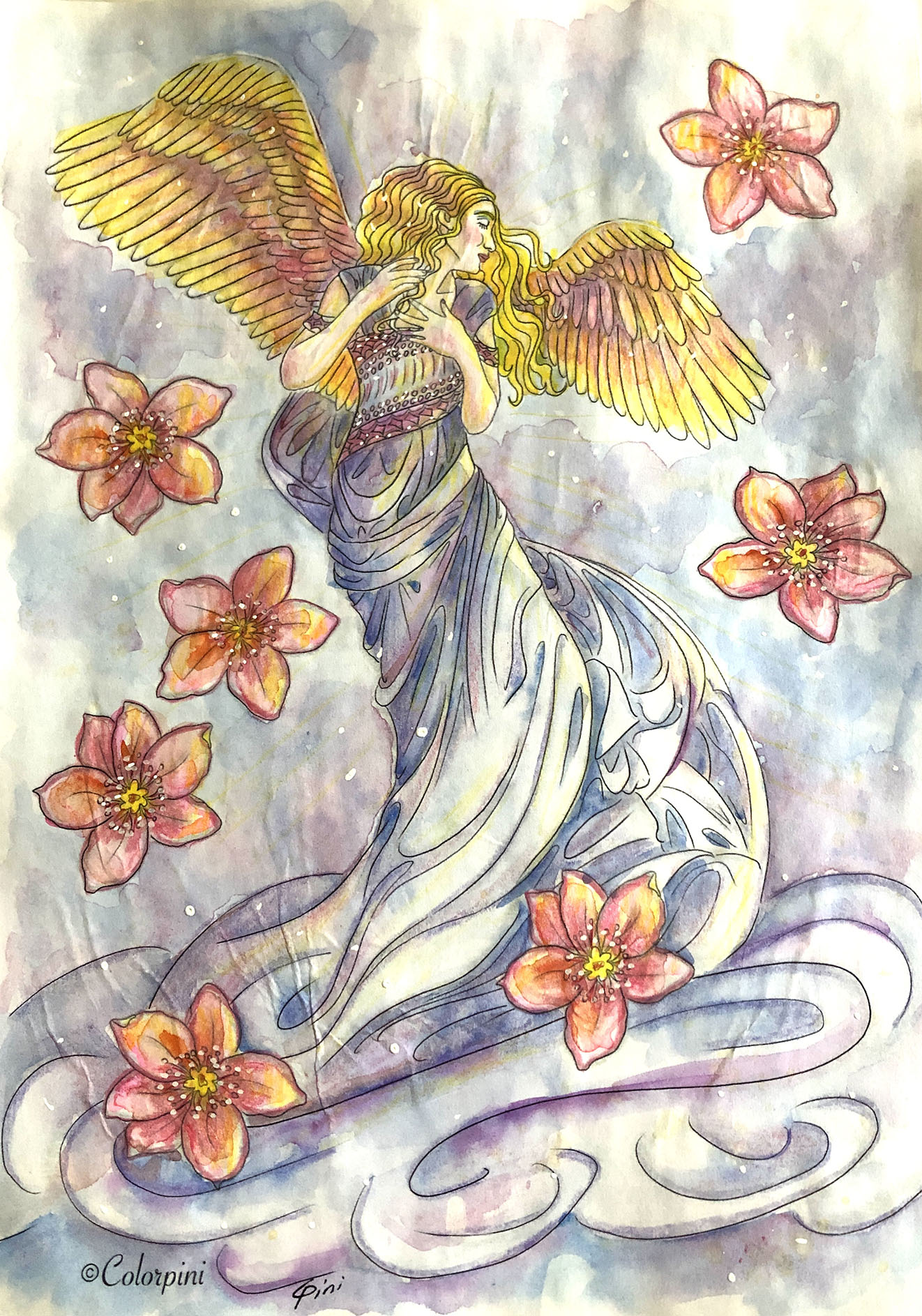 ANGELS VOLUME 2 – digital Coloring Pages for Adults – 6 gorgeous designs in a LINEART and a GRAYSCALE LIGHT PDF – just download and print from Etsy Colorpini