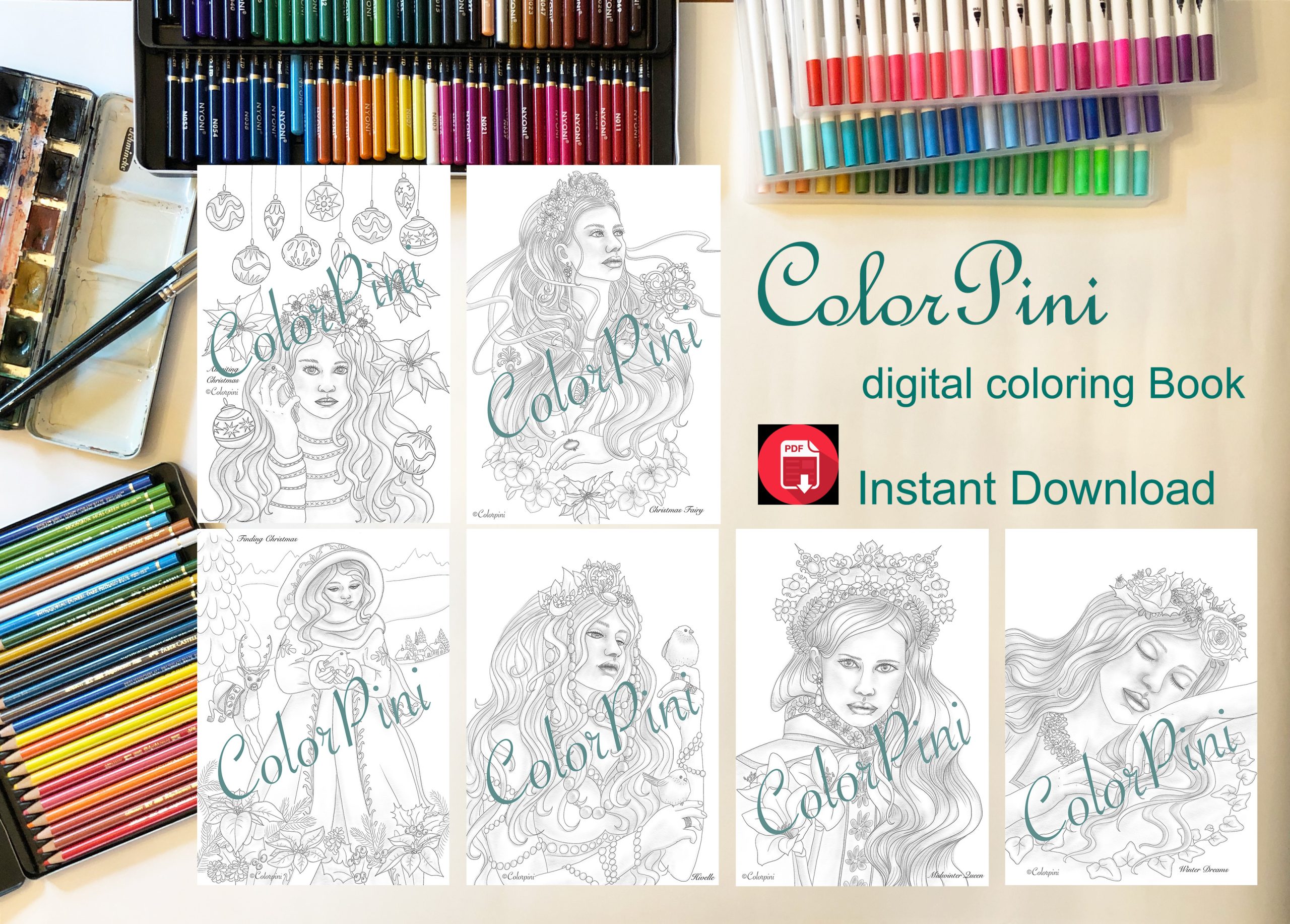 CHRISTMAS VOLUME 1 – digital Coloring Pages for Adults – 6 gorgeous designs in a LINEART and a GRAYSCALE LIGHT PDF – just download and print from Etsy Colorpini